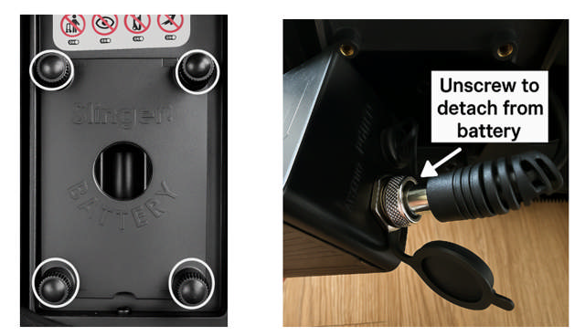 - At the back of the battery, unscrew the round metal nut to detach the cable.